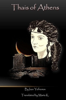 Nach dieser Erfahrung wandte Jefremow sich wieder der Historical Fiction zu, einem Genre, mit dem er bereits früher mit "At The Edge Of Ecumene", einer in der Welt der Alten Ägypter und Hellenen angesiedelten Abenteuer-Novelle, experimentiert hatte. Daran schloss auch sein letztes Werk, "Thais of Athens" (Abb.3) an, einer Geschichte über die historische Hätere Thais, die Alexander den Großen auf seinen Eroberungszügen begleitete, und ihn angestiftet haben soll, den Königspalast von Persepolis niederzubrennen. Diese "Novelle, welche hauptsächlich die Lücken zwischen bekannten historischen Ereignissen ausfüllt, weist zudem auch die am höchsten entwickelte Version von Jefremows sozialer Inferno-Theorie auf, an welcher er den größten Teil seines Lebens gearbeitet hat, und die erstmals in seinem 'Andromedanebel' vorgestellt, und in seiner 60er-Jahre-Novelle 'Razor's Edge' weiter behandelt wurde." [19]