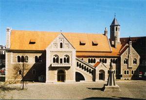 Ebenso müssen die zahlreichen Brückenmodelle, die von Gymnasiasten nach Caesars Beschreibung gefertigt wurden (Bell. Gall. IV, 17), erwähnt werden. Auch Bauwerke des Historismus, wie die Burg Dankwarderode in Braunschweig (Abb. 2) oder auch die Schlösser von Ludwig II (Neuschwanstein) können mit zum Spektrum historischer Rekonstruktion gerechnet werden. Neuen Aufschwung erhielt die experimentelle Archäologie in den sechziger Jahren durch verschiedene Projekte vor allem aus Dänemark (Lejre) und aus England (Fansa 1990). Inzwischen leiteten sich daraus eine Vielzahl von Versuchen ab, von denen einige kürzlich in einer Wanderausstellung zusammengefaßt wurden (Fansa 1996)." [6]