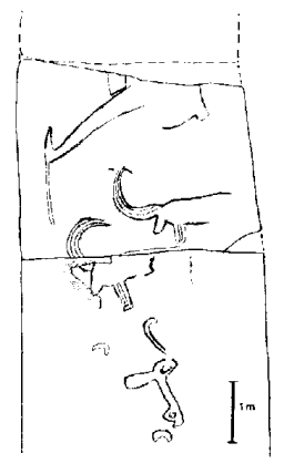 Bei Restaurierungsarbeiten an einem Schluss-Stein am Grab von Gavrinis, das sich auf einer Insel direkt vor der Küste der Bretagne, entdeckte C.-T. Le Roux Gravuren, die lange Zeit verborgen gewesen waren. Die Gravuren und der Felsblock selber passen perfekt zum Schluss-Stein des 'Table des Marchands', eines anderen berühmten Megalith-Monuments in etwa vier Kilometern Entfernung.