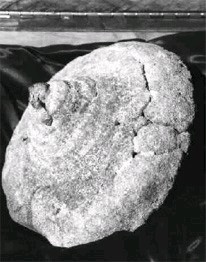 Die beschriebene versteinerte Qualle erinnert mich dann an den Artikel von Volker Ritters in SYNESIS Nr. 30/1998 über einen versteinerten Seeigel (Abb. 5), der in der darauffolgenden Ausgabe noch ergänzt wurde. In diesem Fall ist ein Seeigel in einer Art und Weise dreidimensional versteinert entstanden, die nicht der gängigen Theorie entsprechender Versteinerungsprozesse entspricht.