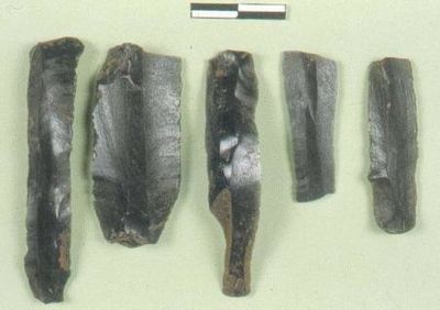 Obsidian ist ein glasiges Gestein, das als Folge von rhyolitischen Vulkanausbrüchen entsteht. Es wurde bereits während der Steinzeit hoch geschätzt, als festgestellt wurde, dass es, wenn es gebrochen wird, sehr scharfe Kanten bildet, die für Werkzeuge (Abb. 1) und Waffen (Abb. 2) geeignet sind. Michael Grant bemerkt dazu: "Es ist die früheste gehandelte Substanz, von der es materielle Überreste gibt." [1]