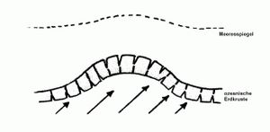 Die Geologie versucht, die Plattentektonik mit verschiedenen Modellen zu verstehen und verwendet u.a. die Begriffe "sea floor spreading" und "Subduktion" 7. Sea floor spreading fand statt unmittelbar bei und nach der Kollision des Himmelskörpers. Die heute noch meßbaren Plattenbewegungen sind nur ganz bescheidene Nachwirkungen, genauso wie die meisten Erdbeben und Vulkanausbrüche. Die zentralen RiftspaIten und die Bruchzonen zwischen den einzelnen Platten werden nie wieder ihre ursprüngliche Festigkeit erhalten und noch länger instabile Zonen bleiben. Es muß hier erwähnt werden, daß auf den Reliefkarten der Meeresböden nirgendwo in einer sogenannten "sea floor spreading" Zone eine Stufenbildung erkennbar ist.