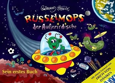 Im vergangenen Jahr (2013), kam der kleine Rüsselmops im Ancient Mail Verlag, einem Partnerprojekt von Atlantisforschung.de, erstmalig auch 'ganz groß' heraus - nämlich in Buchform. Mit "Rüsselmops der Außerirdische" (Abb. 17) haben bekennende 'Mopsianer' (und solche die es werden möchten!) jetzt endlich auch die Möglichkeit, unter dem Motto "Rüssel hoch und zu den Sternen!" die besten farbigen Comicsabenteuern des pfiffigem Grünlings als 'geballte Ladung' zu genießen. [6] Seit 2014 liegen die Verwertungsrechte der Comicserie „Rüsselmops“ bei der internationalen Bild- und Cartoon-Agentur Bulls Press [7] Dort wird Habecks "intergalaktischer Eulenspiegel" nun liebevoll betreut, der dem Vernehmen nach inzwischen Mitglied einer streng geheimen Vereinigung namens SUPERGAU („Super-Gesellschaft für Außerirdische Umtriebe“) ist, welche die schleichende Vermopsung der Welt vorsieht... [8]