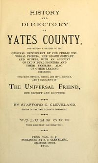 - 11) Archive.org, unter: History and directory of Yates County: containing a sketch of its original settlement by the Public Universal Friends, the lessee company and others, with an account of individual pioneers and their families; also of other leading citizens ; including church, school and civil history, and a narrative of the Universal Friend, her society and doctrine by Cleveland, Stafford Canning, 1822-1885; Bootes, Fenton E., Mrs