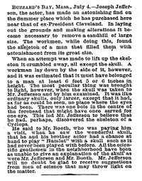 "Buzzard's Bay, Massachusetts, 4. Juli - Joseph Jefferson (Abb. 3), der Schauspieler, hat auf seinem Sommer-Wohnsitz, welchen er hier, in der Nähe [der Residenz] von Ex-Präsident Cleveland erworben hat, eine erstaunliche Entdeckung gemacht.
