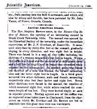 Gegen Ende des 19. Jahrhunderts war auch dem Scientific American (Abb. 3) der Fund von Riesen-Skeletten offenbar durchaus noch eine Meldung wert, wenn sie sich wie im folgenden Fall präsentiert: "Der Rev. Stephen Bowers meldet in der 'Kansas City Review of Science' die Öffnung eines interessanten Mounds in der Gemeinde Brush Creek, Ohio. Der Mound wurde von der Historischen Gesellschaft der Gemeinde unter direkter Aufsicht von Dr. J.F. Everhart aus Zanesville geöffnet.