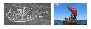 Dafür studieren wir gerade alte Segelkulturen mit ihren heute noch benutzten Takelagen, die einen dreieckigen Segelschnitt aufweisen. Diese Studien helfen uns vielleicht für die anstehenden Experimente auf der Ostsee, in denen wir uns für den besten Schnitt für unser neues Segel abstimmen werden. Der Kompromiss zwischen vorzeitlichen Felsbild und tatsächlicher bautechnischer Umsetzung ist nicht immer so einfach, wie es auf den ersten Blick scheint.