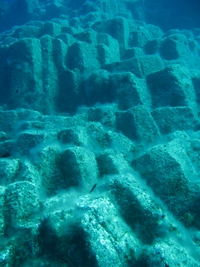 Bucher machte mit seinem Bruder eine Reihe von Tauchgängen in der unmittelbaren Nähe der Insel Linosa, einem Felsen vulkanischen Ursprungs mit einem Durchmesser von ca. 500 m, rund 200 km von Sizilien entfernt, der etwa 200 oder 300 Menschen beherbergt. Dabei stellte der Forscher eine Umgebung fest, die völlig anders als die zu erwartende vulkanische Landschaft war. Er fand einen Komplex von regelmäßigen, rechteckigen Felsblöcken vor, die bis zu einer Tiefe von 55 – 60 m auskragten; eine regelrechte, echte Mauer, die sich in horizontaler Richtung über einige hundert Meter ausdehnt.